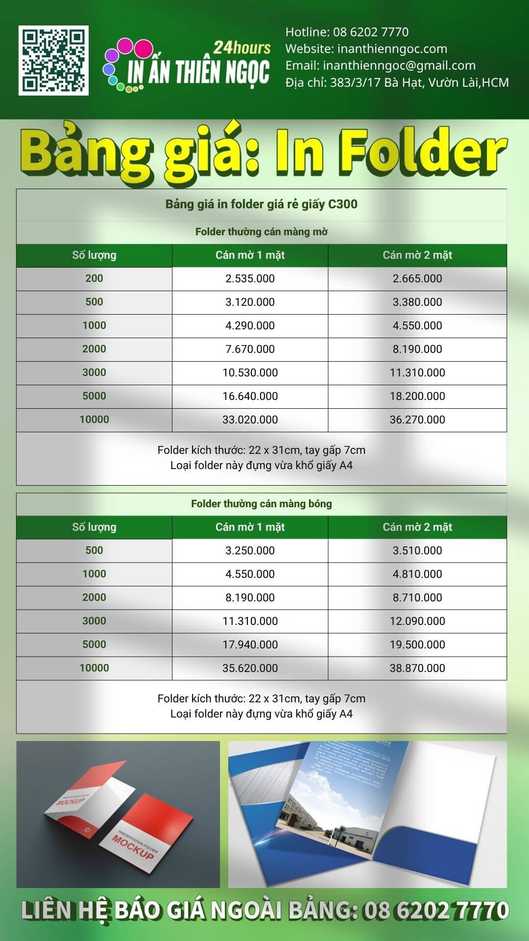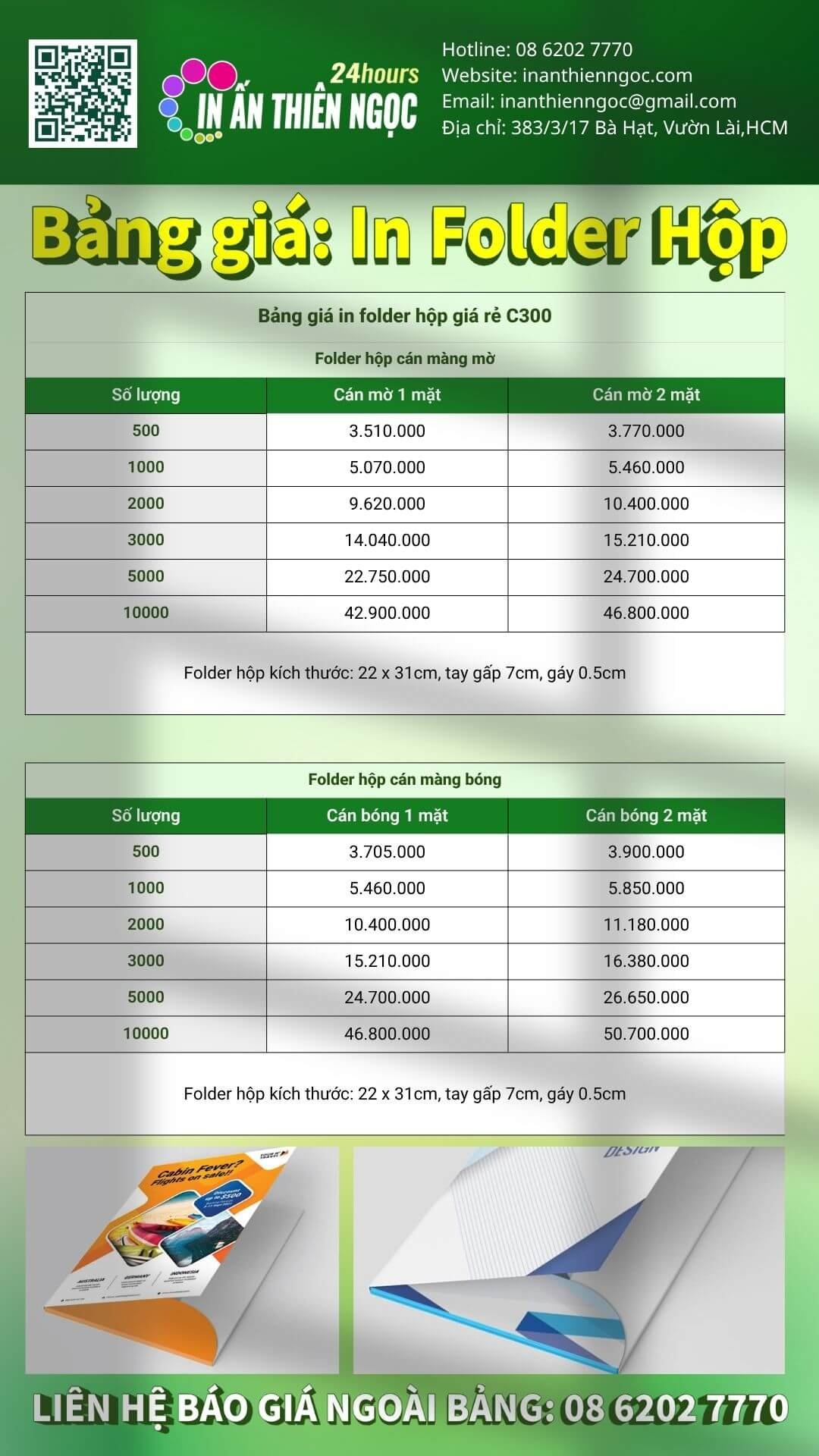 Giá in folder có thể cao hơn các ấn phẩm phẳng khác do yêu cầu về độ dày của giấy và công đoạn gia công phức tạp.